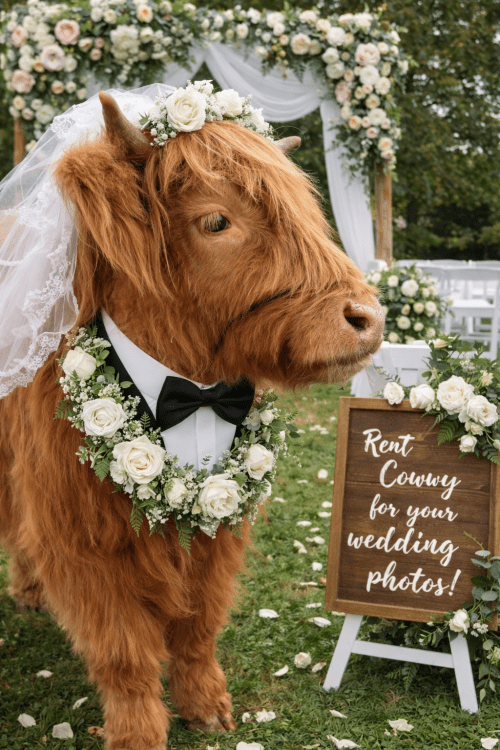 Elevate your wedding with an unforgettable, editorial-worthy experience. Our Highland Cow Wedding Appearance is a refined, one-of-a-kind feature designed for couples seeking something truly distinctive.