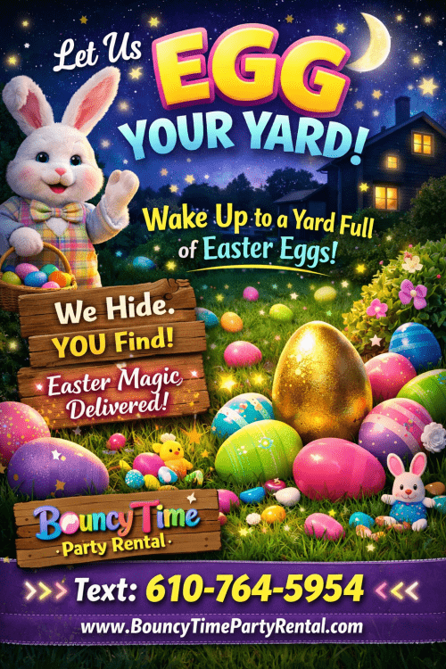 Make Easter morning unforgettable with Bouncy Time Party Rental’s Egg My Yard service!